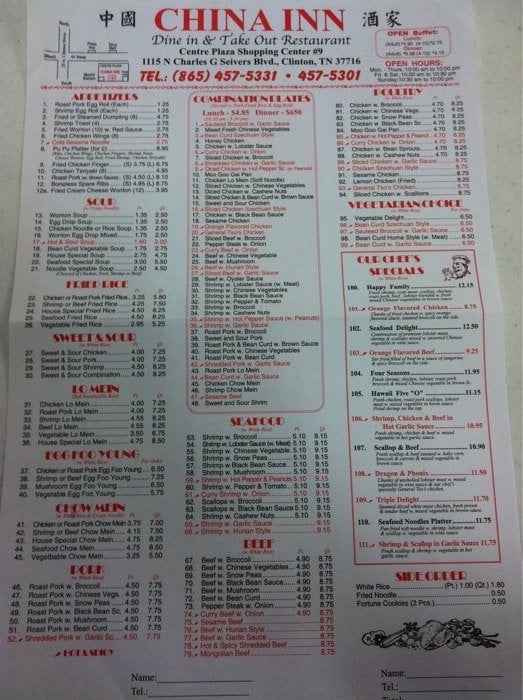 Introducing the menu at China Inn, located at 1115 N Charles G Seivers Blvd in Clinton, TN, takes diners on a delightful journey through Asian fusion cuisine. This unclaimed gem offers a variety of tempting appetizers, such as the crispy Spring Rolls and satisfying Fried Wontons, both perfect for sharing.